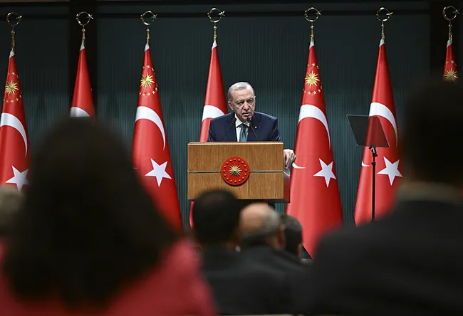 Başkan Erdoğan, Cumhurbaşkanlığı Külliyesi’ndeki Kabine Toplantısı’nın ardından millete seslendi. Ekonomiden güvenliğe, dış politikadan ticarete pek çok konuyu istişare ettikleri bir Kabine Toplantısı’nı daha tamamladıklarını belirten Erdoğan, toplantıya katkı veren tüm bakanlara ve bürokratlara teşekkür edip, alınan kararların Türkiye için hayırlara vesile olmasını diledi.